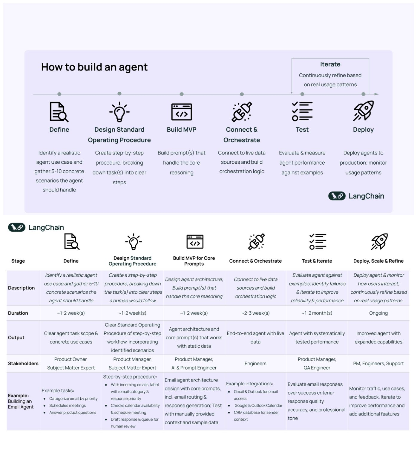 Iterate and Evaluate: Continuously test and refine your agent. Define clear success metrics and use evaluation frameworks to measure performance. This includes testing prompts, tool usage, and overall task completion.